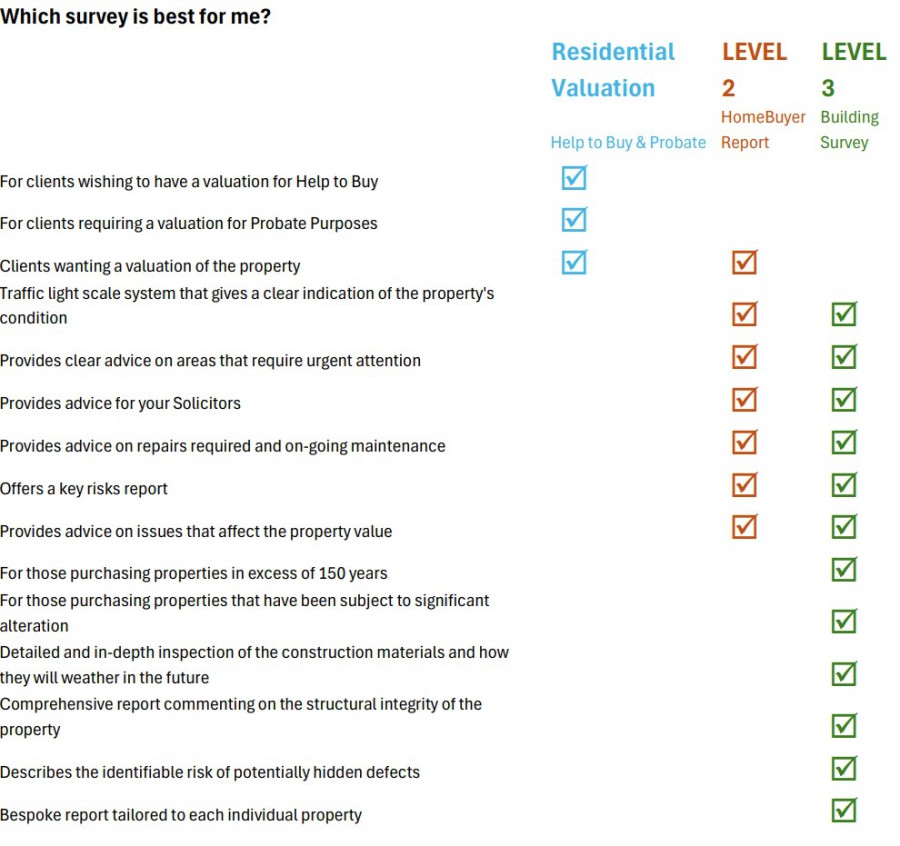 You have made the decision to have a survey but are confused as to which survey is best for you. See the checklist beelow to help you decide.